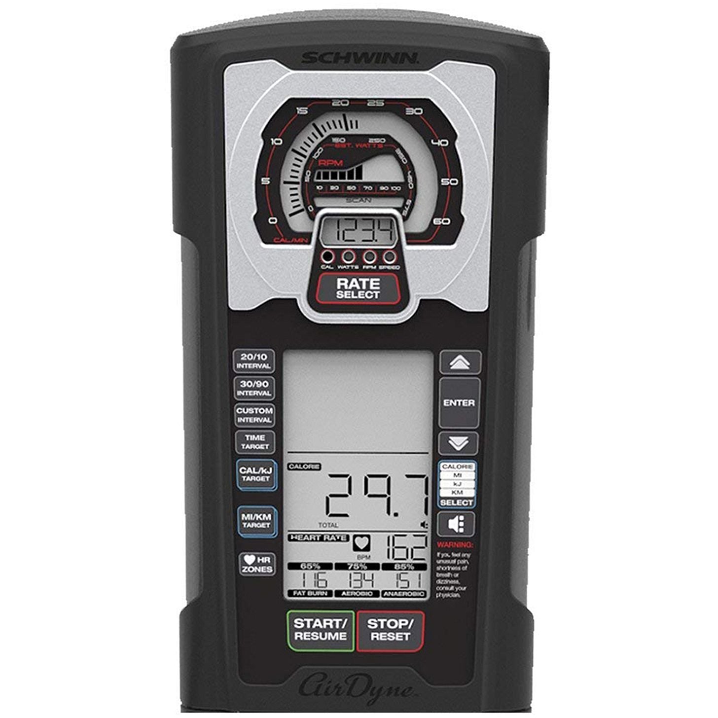 Time, Distance, Calories, Speed, RPM, Watts, Pulse (Heart Rate)